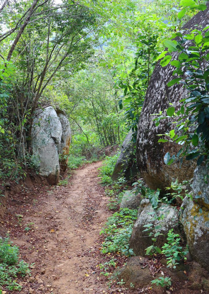 A trilha no geral é bem marcada e consolidada, com trechos amplos e de fácil orientação. Fique atento às bifurcações e para um trecho ou outro com o mato mais fechado. Apenas na primeira bifurcação é preciso atenção para não seguir em direção à Serra da Catuama; o caminho correto segue sempre pela esquerda.