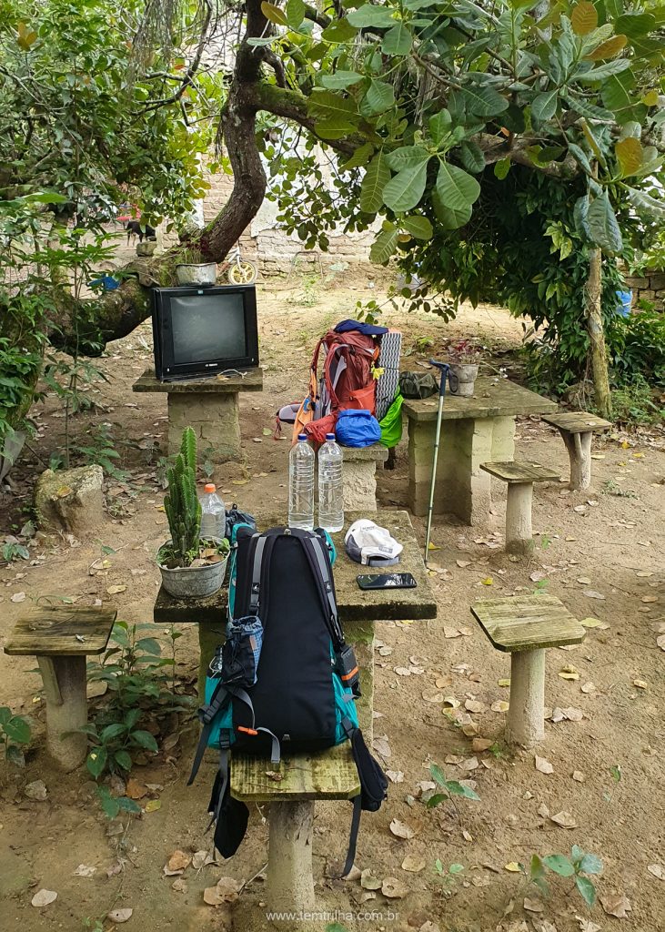Antes de subir, hidratei-me bem e levei 2,5 litros de água: consumi meio litro durante a subida, utilizei 1 litro no acampamento (entre preparo de comida e consumo) e mais 1 litro no início do dia seguinte na casa de um morador — embora meio litro teria sido suficiente. Caso precise, leve mais água.