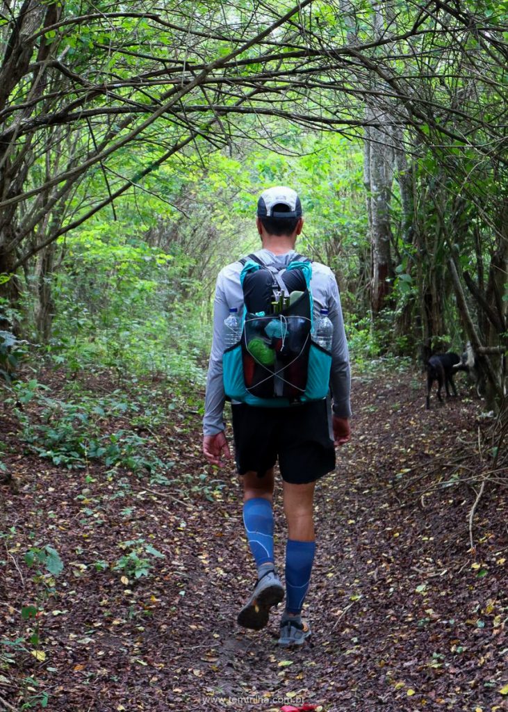 Carreguei mais água do que o necessário por se tratar de uma trilha exploratória, sem a certeza da presença de moradores na parte alta da serra. Para a subida, 2 litros teriam sido adequados.
